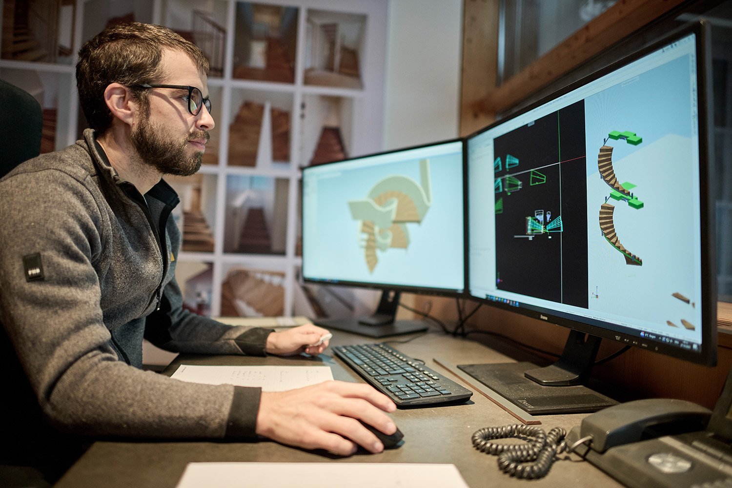 Wir bieten Ihnen das Gesamtkonzept aus einer Hand. Wir koordinieren jeden Arbeitsschritt – vom Aufmaß der Holzstiege bis zur Gestaltung, Fertigung und Montage – und stehen Ihnen als Ansprechpartner persönlich zur Seite.